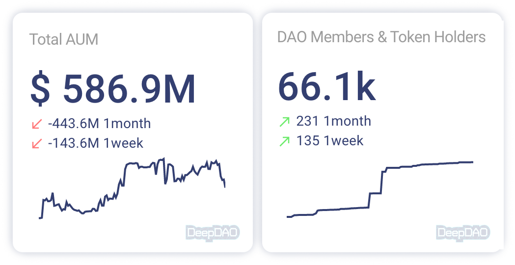 The DAO ecosystem’s total asset under management (AUM) is currently at $586.9M (June 7). For members and token holders in the ecosystem, the current total is over 66,100 which has experienced an increase of over 250 since May.